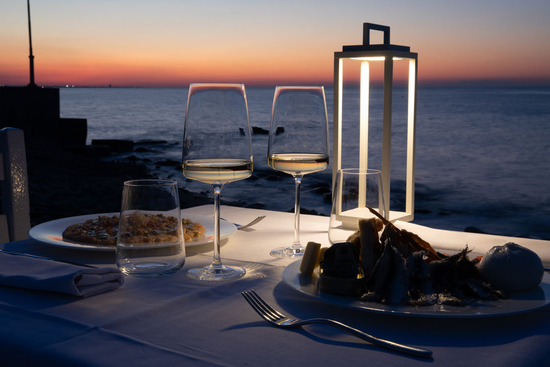 Offrirvi il meglio, per noi, non significa proporvi camerieri in guanti bianchi o un’atmosfera in punta di forchetta. È immergersi nella Natura, sentire lo scrosciare delle onde lasciandosi accarezzare dalla brezza marina con lo sguardo che si perde nell’infinita tavolozza di colori del cielo che si tuffa nel mare.